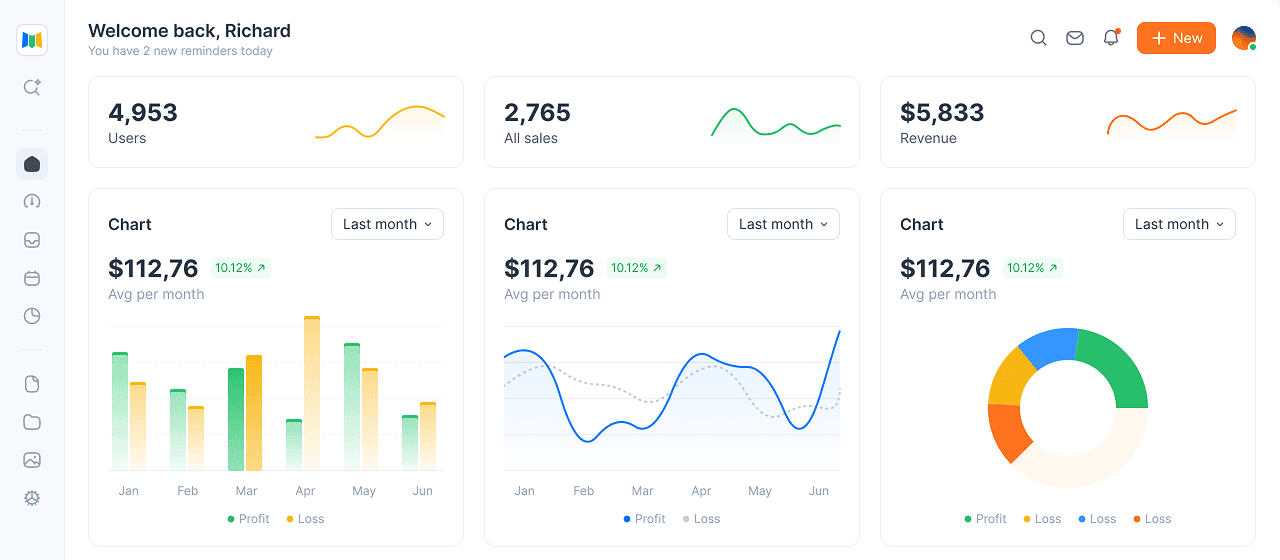 Built-in 40+ templates for core interfaces like Dashboard, Task flows, AI Assistant, and Customer management to streamline your SaaS project process.